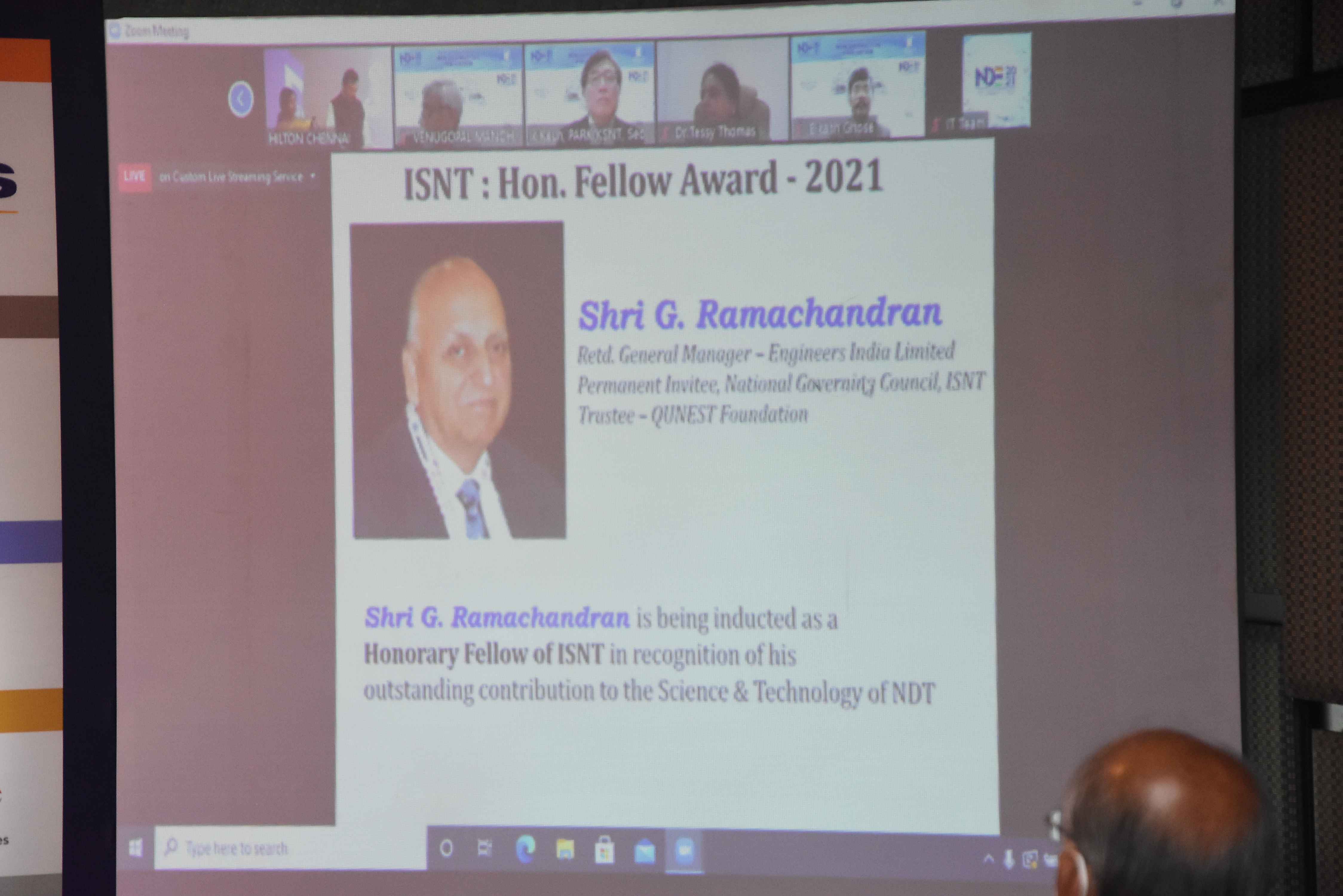 He is a Life Fellow of the Indian Society of Nondestructive Testing (ISNT).